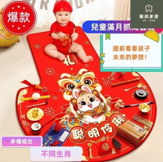 現在也有許多專門舉辦抓週儀式的行業,不管是到指定場地抓週、還是到府抓週都有很完善的選擇!當然如果不想要花大錢租場地道具,也有許多能一物多用的抓週道具可以輕鬆購入。