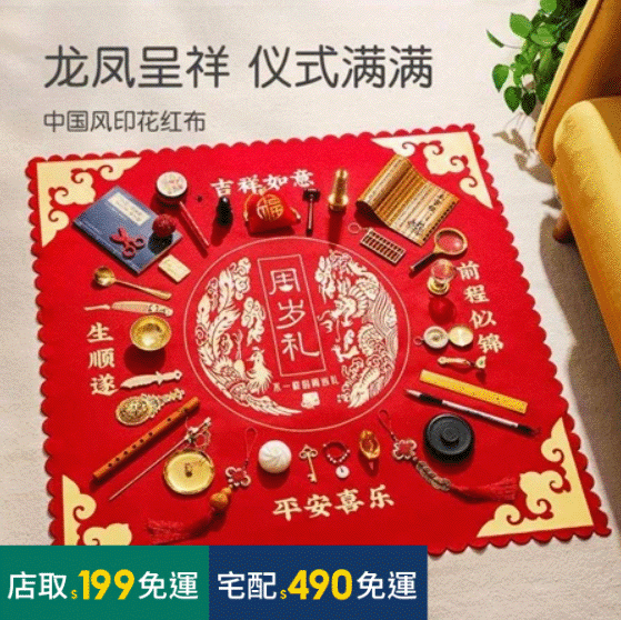 婆家需要準備抓周禮:牲禮、水果,以及紅包。