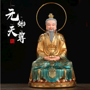 在道教宮觀中,元始天尊常被塑造成手持混元珠(象徵混沌),頭頂圓光,足踏蓮花,與另二清形成「一氣化三清」的視覺符號。在道教中,元始天尊是「三清」之首,跟祂並肩的有兩位大咖: