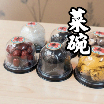 素齋:6、10或12樣 ( 金針、豆皮、豆乾、桂圓、香菇、昆布、花生、麵筋、芋頭、筍乾、松茸、木耳、紫菜、碗豆、菜心、堅果、蠶豆、豆苗、麵筋、髮菜、紅豆、綠豆、芝麻、海苔、冰糖、蓮子等 )。
