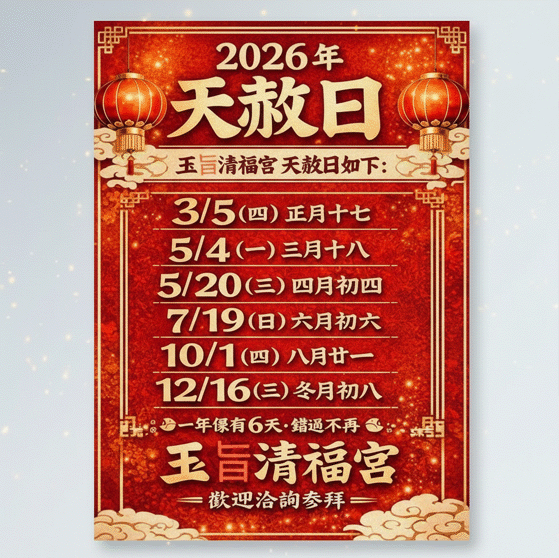 「天赦日」又稱「赦罪之日」,是道教和民間信仰中的重要日子,被認為是上天赦免罪過、消災解厄的吉日,尤其適合祈福、祭祀、補運或「補財庫」。以下是有關天赦日「補財庫」的傳統方法和注意事項: