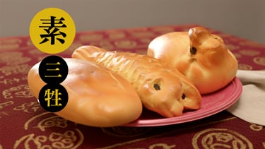 收涎餅:拜完後,穿紅線掛嬰兒頸部象徵收涎。