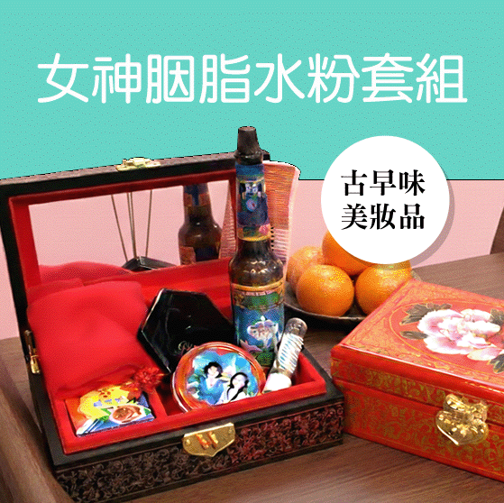 化妝品:如口紅、香水、圓鏡、梳子等等,象徵女性魅力與智慧。
