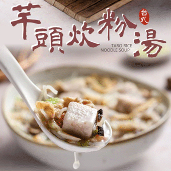 米粉芋:芋頭與米粉結合一起供拜或食用,有祝福家人健康長壽、子孫滿堂、好運連連之意。